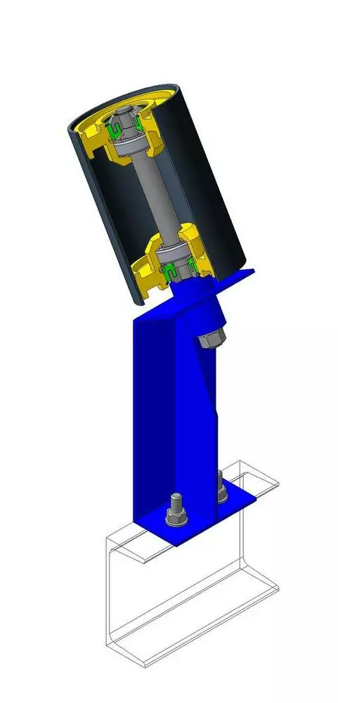 используется в конструкции конвейера для направления конвейерной ленты по заданной траектории. Наша конструкция дефлекторного ролика обеспечивает длительный срок эксплуатации, и надежно сохраняет конвейер от повреждений связанных со сходом конвейерной ленты.