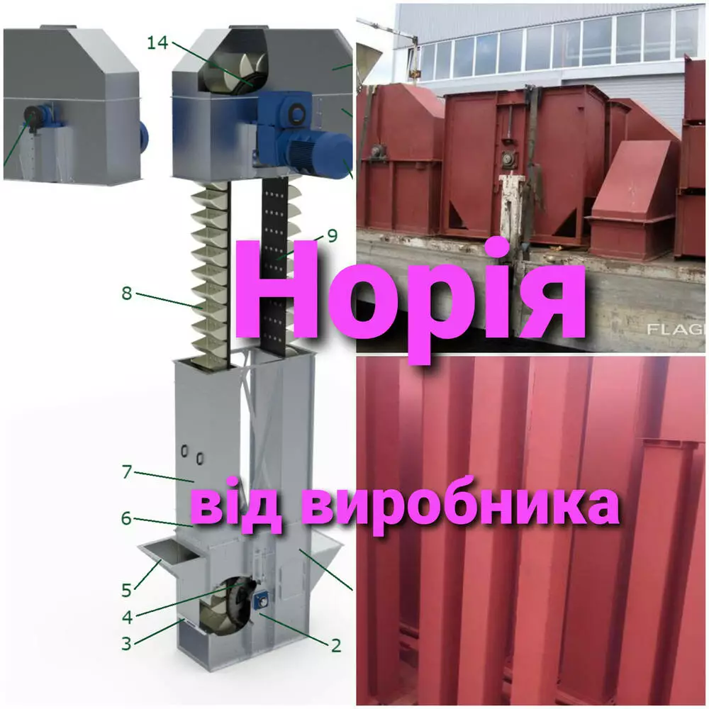 Норії ковшові для транспортування зернових , олійних , зернобобових, дрібно насінних культур, а також для транспортування гранульованих продуктів.